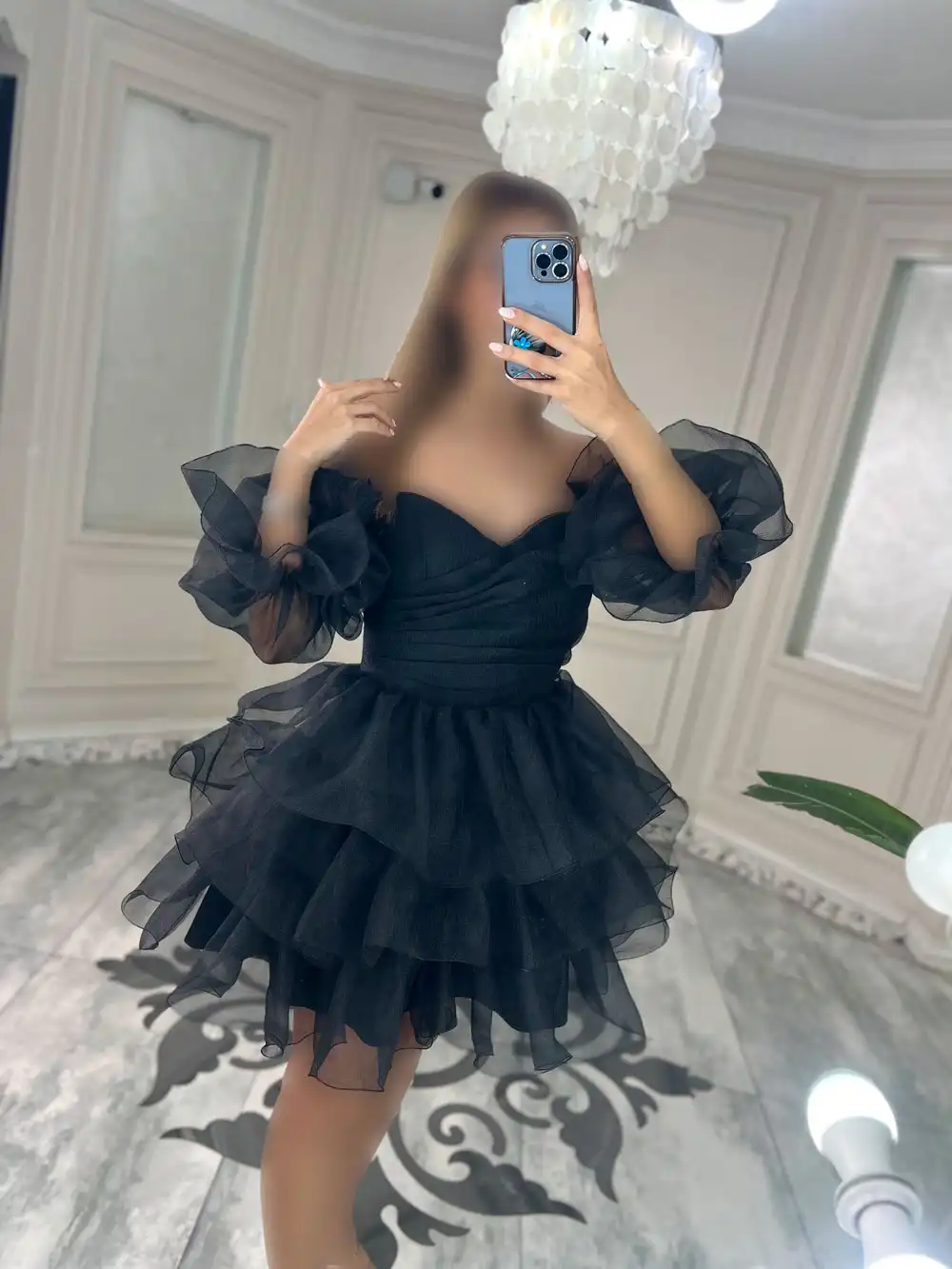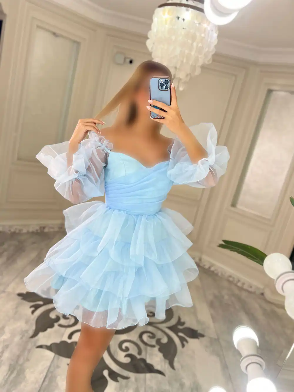 پیراهن عروسکی دکلته بالا پر دار کد 3143