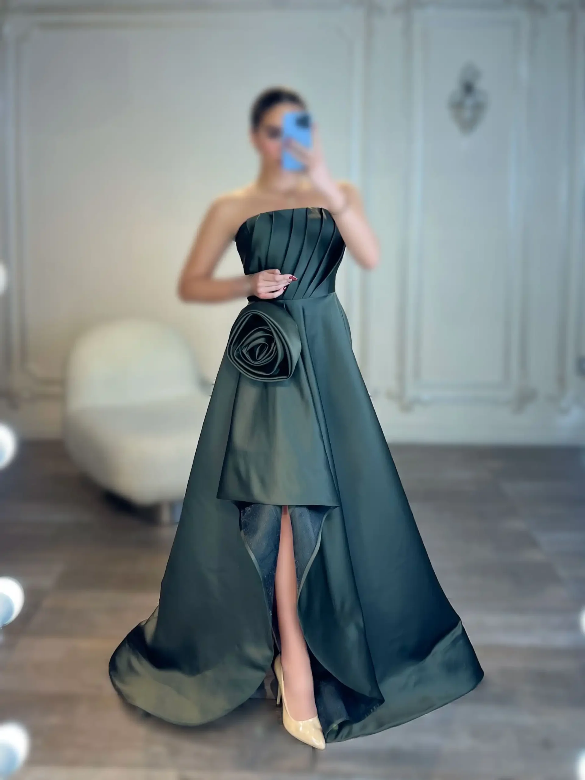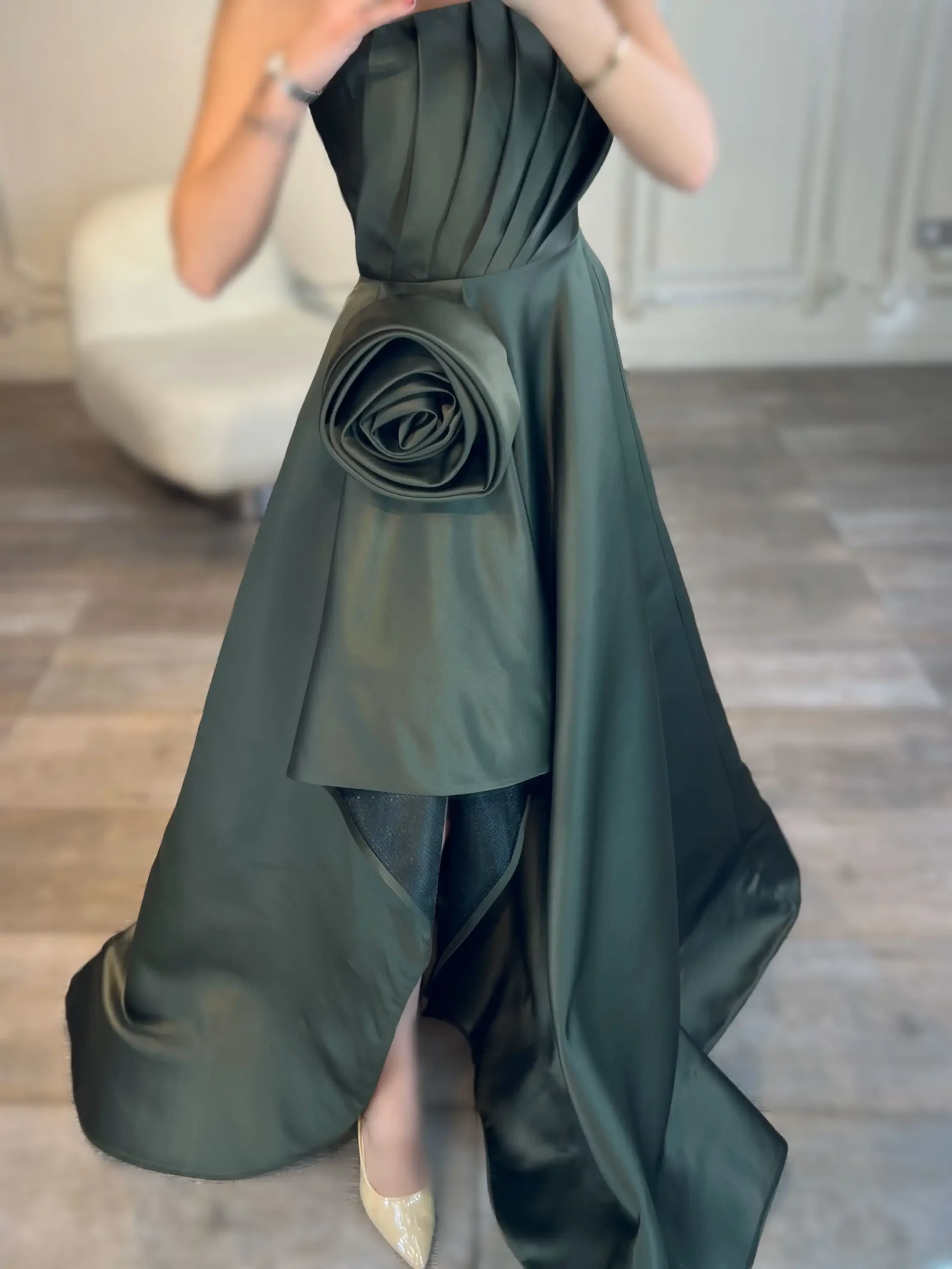 ماکسی دکلته ساتن بغل گل کد AA34