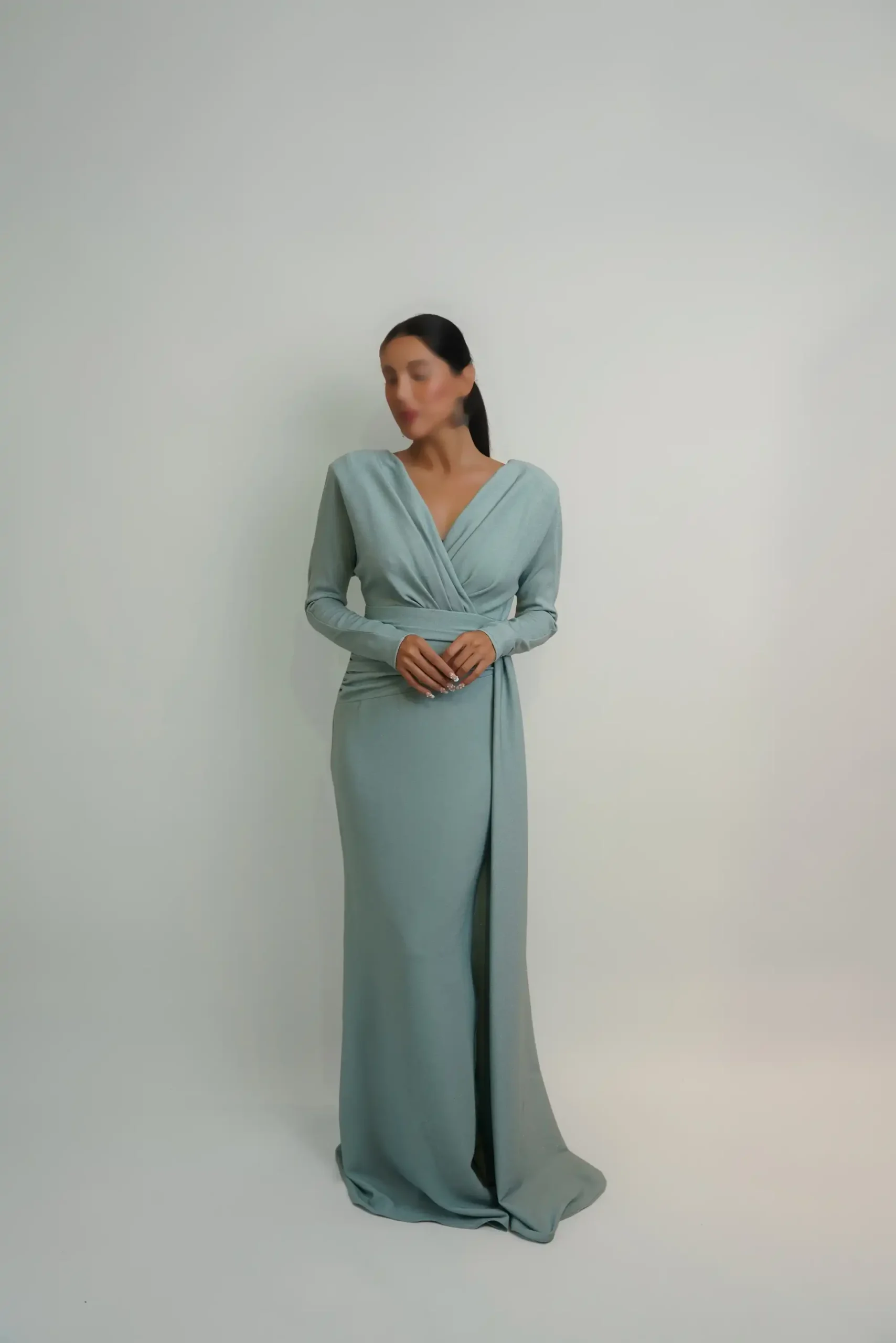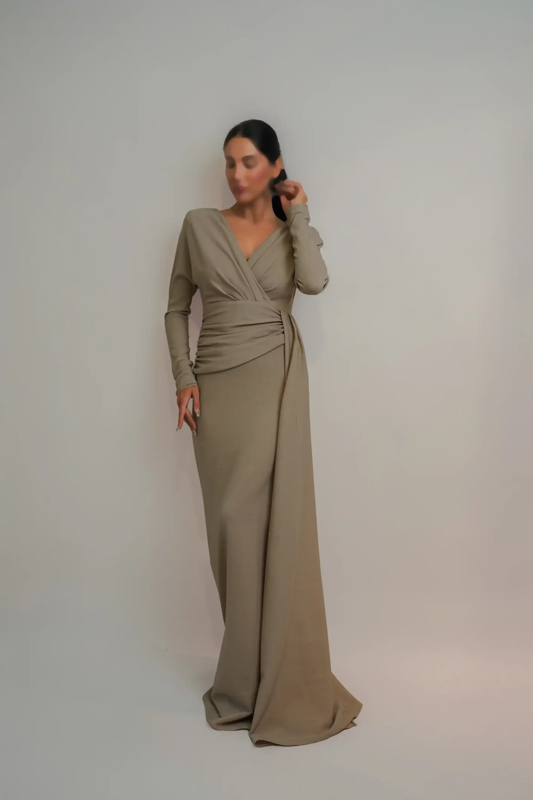 پیراهن ساتن ماکسی یقه پاپیونی کد 4011038