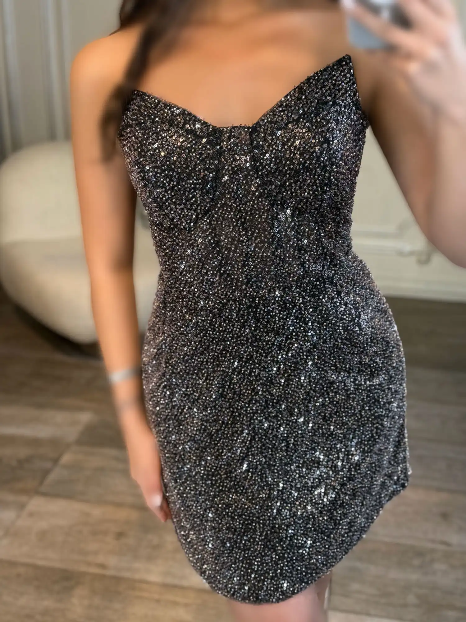 پیراهن کوتاه دکلته دامن شیشه ای کد AB34