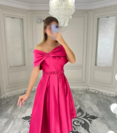 پیراهن میدی ساتن یقه پاپیونی کد 0040248